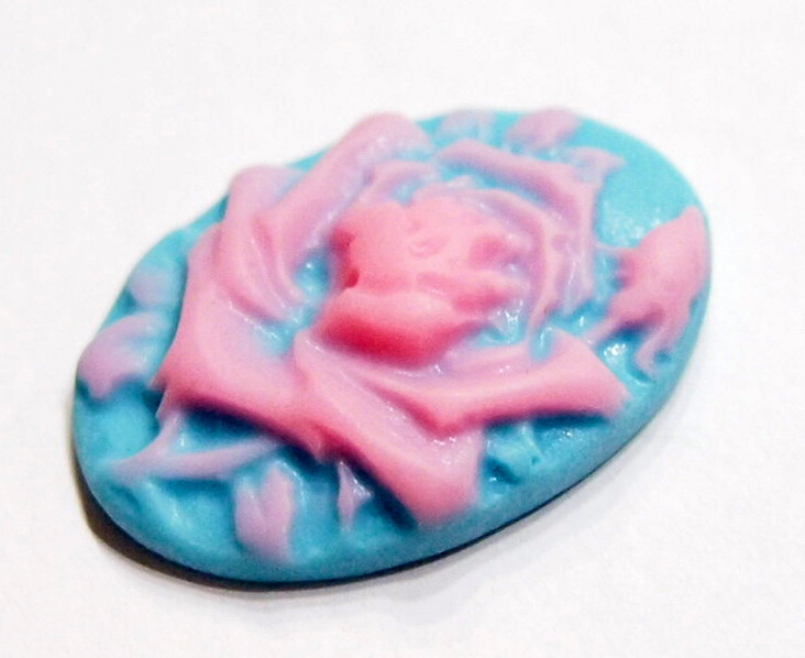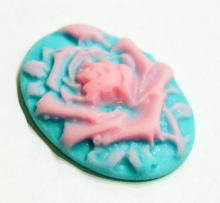 You are buying 6 of 30 mm x 22 mm Pink over Sky Blue Single Rose & Bud Cameos. They are of a beautiful Rose and Bud that fills up the entire cameos, the rose is Pink on a on a Sky Blue color Background. They measure 30 mm x 22 mm. They look very detailed for their size. I have lots of Great Bails, Bracelets, Cameos, Chains, Connectors, Pendants, Pins, Rings & Settings so, just look at all my listings. I have these in 5 other Colors & in a group of 6 Colors.
