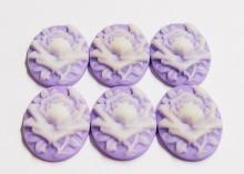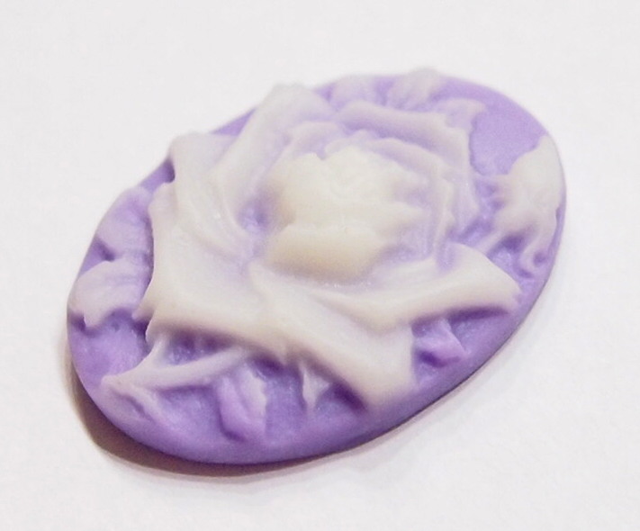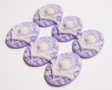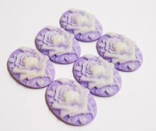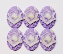 You are buying 6 of 30 mm x 22 mm White over Purple Single Rose & Bud Cameos. They are of a beautiful Rose and Bud that fills up the entire cameo, the rose is white on a on a Purple color Background. They measure 30 mm x 22 mm. They look very detailed for their size. I have lots of Great Bails, Bracelets, Cameos, Chains, Connectors, Pendants, Pins, Rings & Settings so, just look at all my listings. I have these in 1 other Color & in a group of 6 Colors.