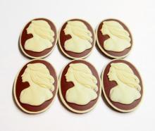 You are buying 6 of 38 mm x 26 mm Cream over Brown Swept Back Hair & bare shoulders Woman Cameos. These Cameos are originally from the 1900-1930's, I only had a few left and found a company to make these for me and they are gorgeous. They look very detailed for their size. These have a matching cream color band around the edge which really sets these off. These are just gorgeous cameos. You could even just glue a bail to the back which I have 21 different ones of & have yourself an easy & ready to wear very nice Cameo. I have lots of Great Bails, Bracelets, Cameos, Chains, Connectors, Jump Rings, Lockets, Pendants, Pins, Rings & Settings so, just look at all my listings. I also have these in pink over white item #110911242413 & in a group of 6 with 3 of the cream over brown & 3 of the pink over white & in 25x18 in 2 Colors as shown in the last picture item #256769454708, sold separately. The last picture shows these in a single band setting which I have 3 Colors of.