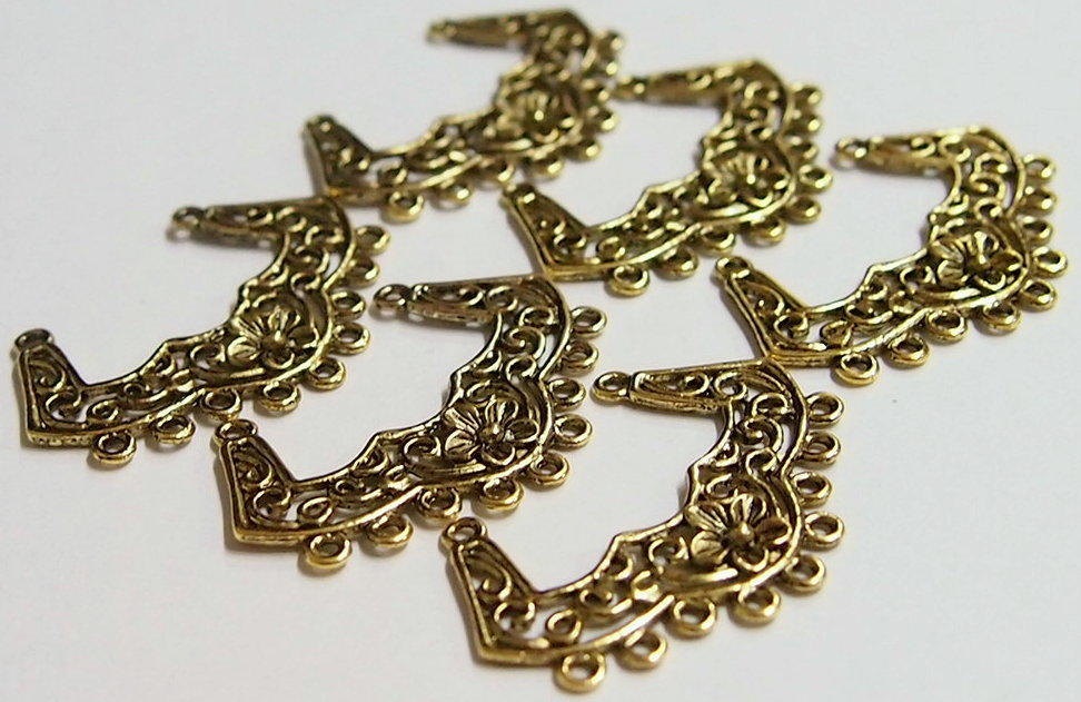 You are buying 6 of 39 mm X 27 mm Wedge Shaped Antique Gold Art Deco Floral Focal Connectors. These will make any of your projects look really nice. These are Very Sturdy. Not flimsy like the other ones you may have seen or bought. I had them special made from vintage connector molds. I have these in Antique Silver as well. I have lots of great cameos, settings, connectors and pendants so, just look at all my listings.