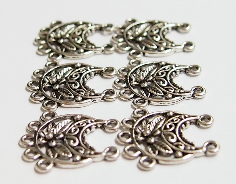 You are buying 6 of Antique Silver Plated Leaf & Flower Connectors. These connectors are originally from the 1900-1930's, I only had a few left and found a company to make these for me and they are gorgeous. These measure 23 mm x 20 mm & are great for any project you need to start or finish. These are lightweight & sturdy. These can be a focal piece of any necklace & they have a great floral design. I have lots of Great Bails, Bracelets, Cameos, Chains, Connectors, Jump Rings, Lockets, Pendants, Pins, Rings & Settings so, just look at all my listings. I have these in 3 other Colors & in a group of 4 Colors as shown in the next to last picture item #111376059421 and are sold separately. These are also offered in a group of 20 different antique silver connectors item #360942863935 as shown in the last picture and are also sold separately.
