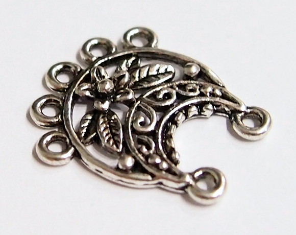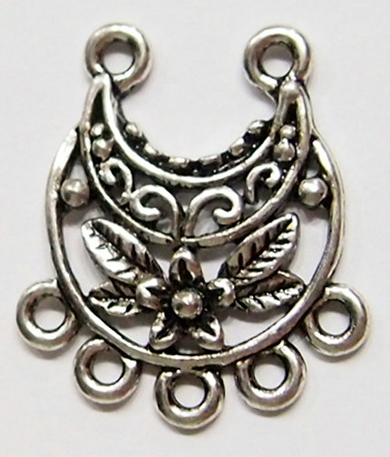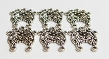 6 Antique Silver Leaf & Flower Connectors, Nice
