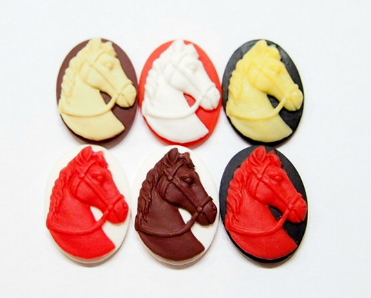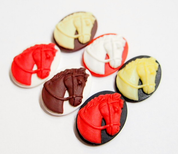 Item # 6 Colors of 25x18 mm Horse Head Portrait Cameos