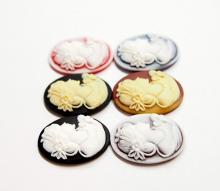 6 Colors of 25x18 mm Victorian Corsage and Pearls Women Cameos, Very Nice
