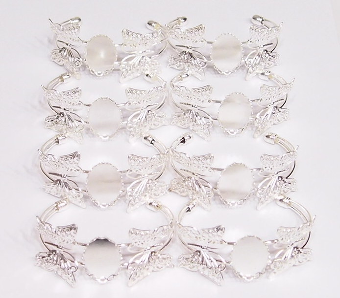 8 of 25x18 mm Silver Butterflies Cuff Bracelet Settings, Very Nice