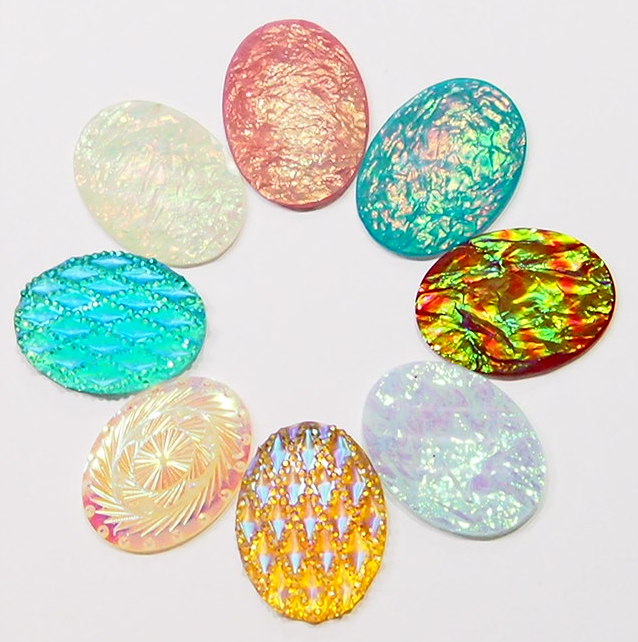 You are buying 8 Colors of 40 mm x 30 mm Acrylic Faceted Cameos. These are really nice. The molding process of these are just great, no flaws. You can use these either Horizontal or Vertical. These measure 40 mm x 30 mm & are Faceted with beautiful colors. I have several different settings these will fit in. They look very detailed for their size. I have lots of Great Bails, Bracelets, Cameos, Chains, Connectors, Jump Rings, Lockets, Pendants, Pins, Rings & Settings so, just look at all my listings. All of these are all offered in groups of 4 of each color. The first is the Hot Pink item #360882140282, next is a blue green diamond faceted item #111300120912, next is a white hot ice item #111300179233, next is the red hot ice item #111300137786, next is a opal looking with geometric patterns item #360883525142, next is a orange purple faceted item #360882101770, next is a aqua blue faceted item #360883504876, and the last is a light blue hot ice acrylic faceted item #360883504876. I also offer a group of 4 of 2 different colors of the diamond faceted cameos as shown in the last picture item #360471675977