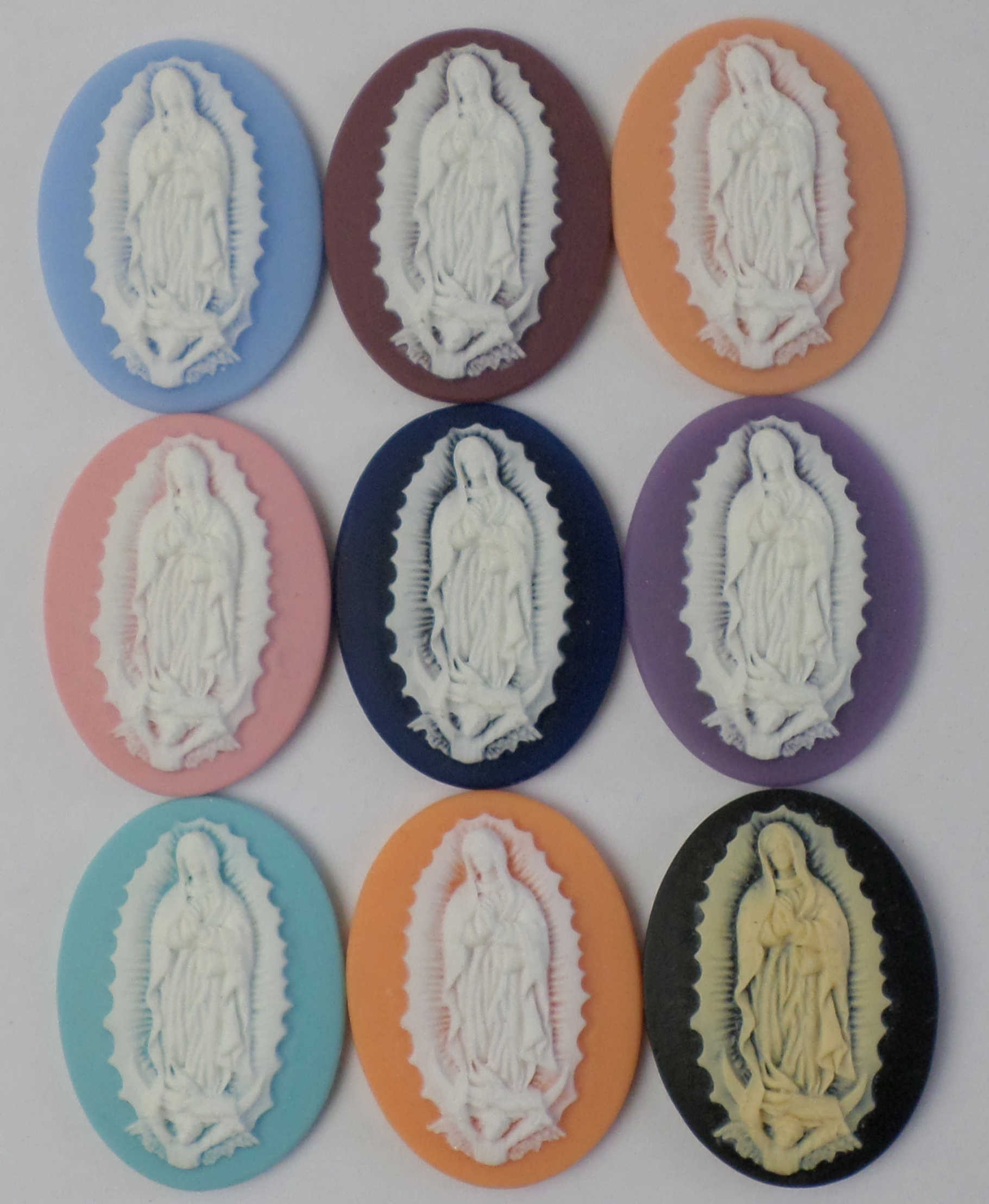 9 Colors of 40x30 mm Lady of Guadalupe Cameos, Nice