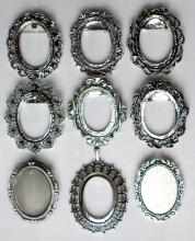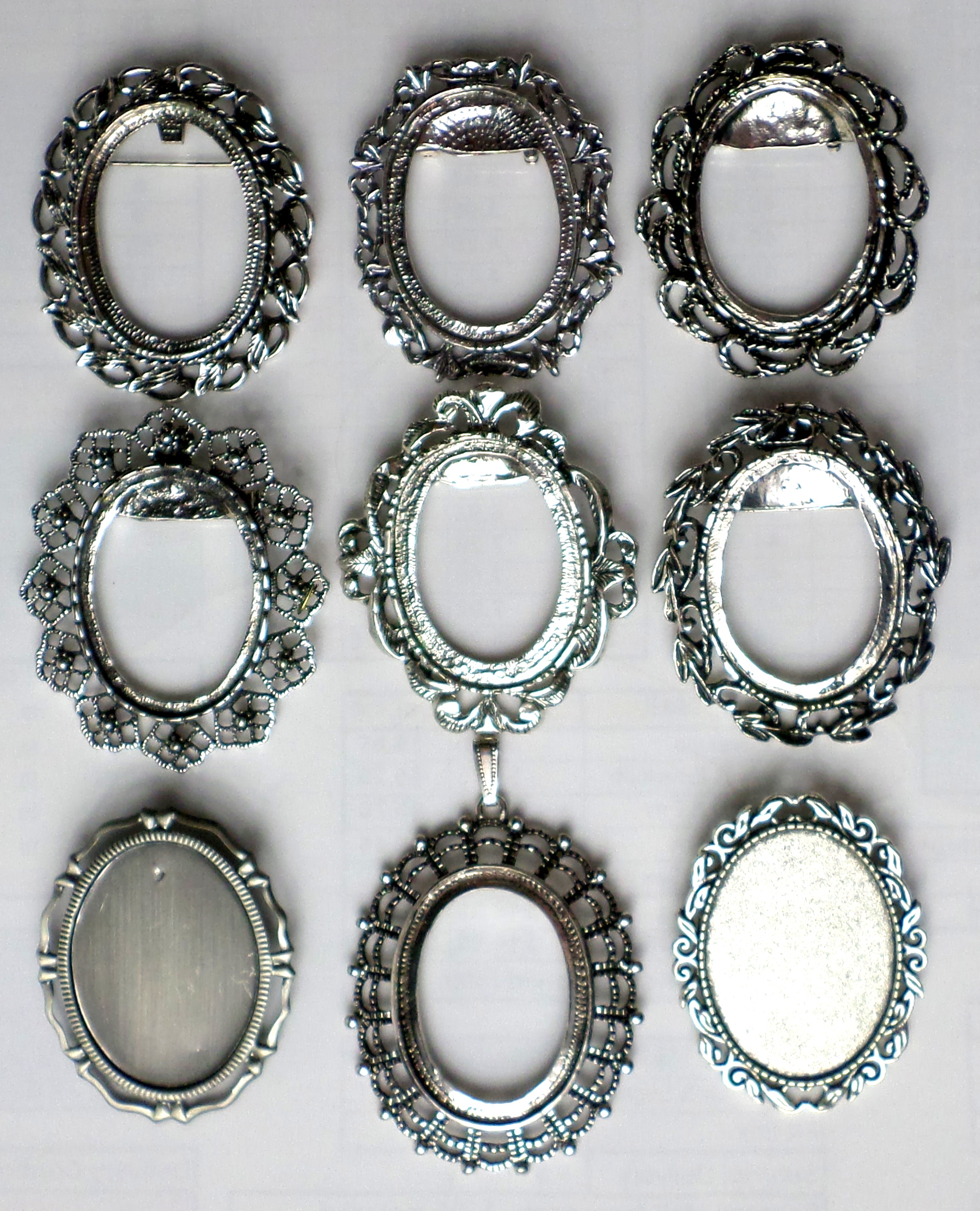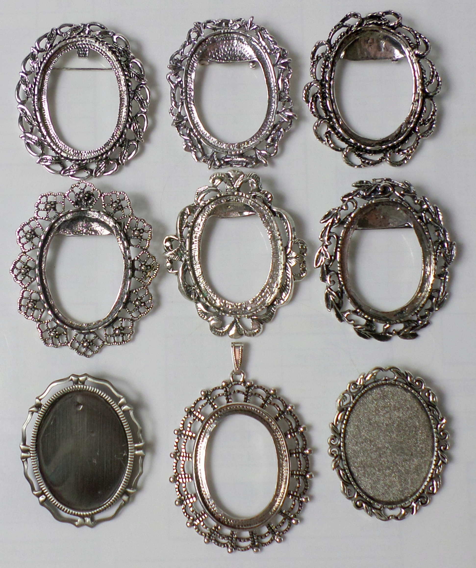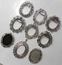 9 Different 40x30 mm Antique Silver Art Deco Brooch Pin or Pendant Settings, Nice