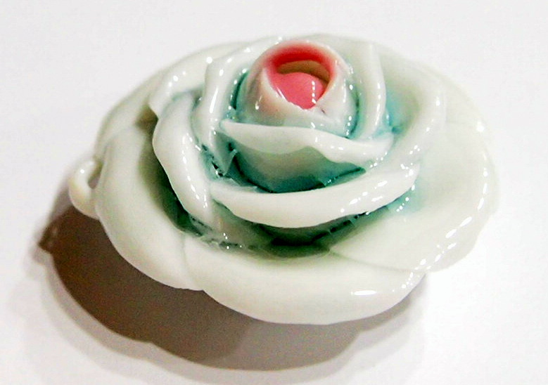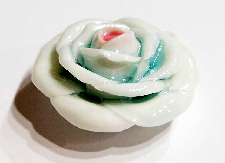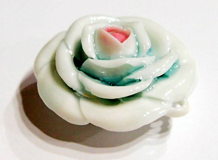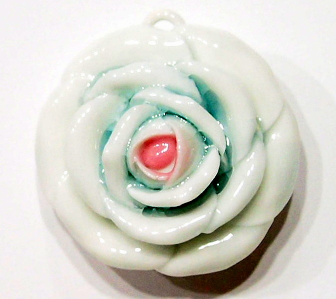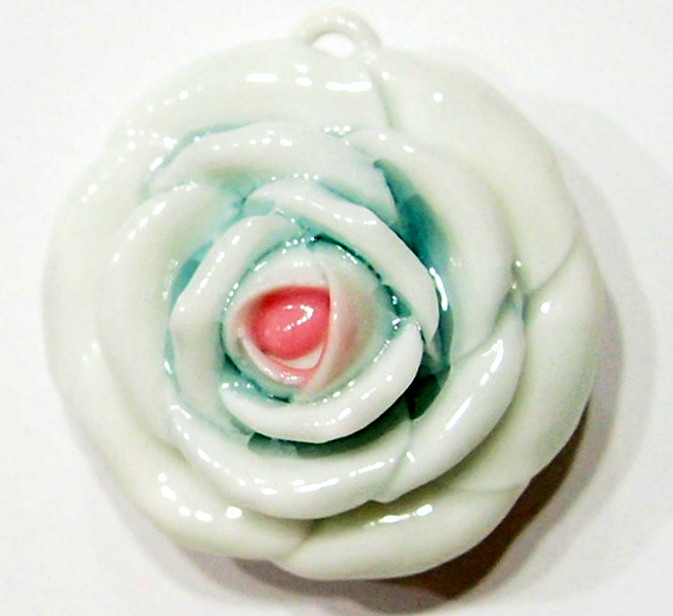 You are buying a Beautiful Hand Painted Porcelain Light Aqua Rose Pendant. This is a Light Aqua Color Rose with a pink bloom in the center. The pendant measures 40 mm in Diameter x 20 mm thick. This has a nice big pendant hanger made into the top as shown in the pictures. I have lots of Great Bails, Bracelets, Cameos, Chains, Connectors, Jump Rings, Lockets, Pendants, Pins, Rings & Settings so, just look at all my listings. These will vary a little in size & Colors. I have several other Colors & designs so check my other listings.