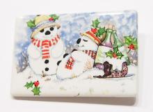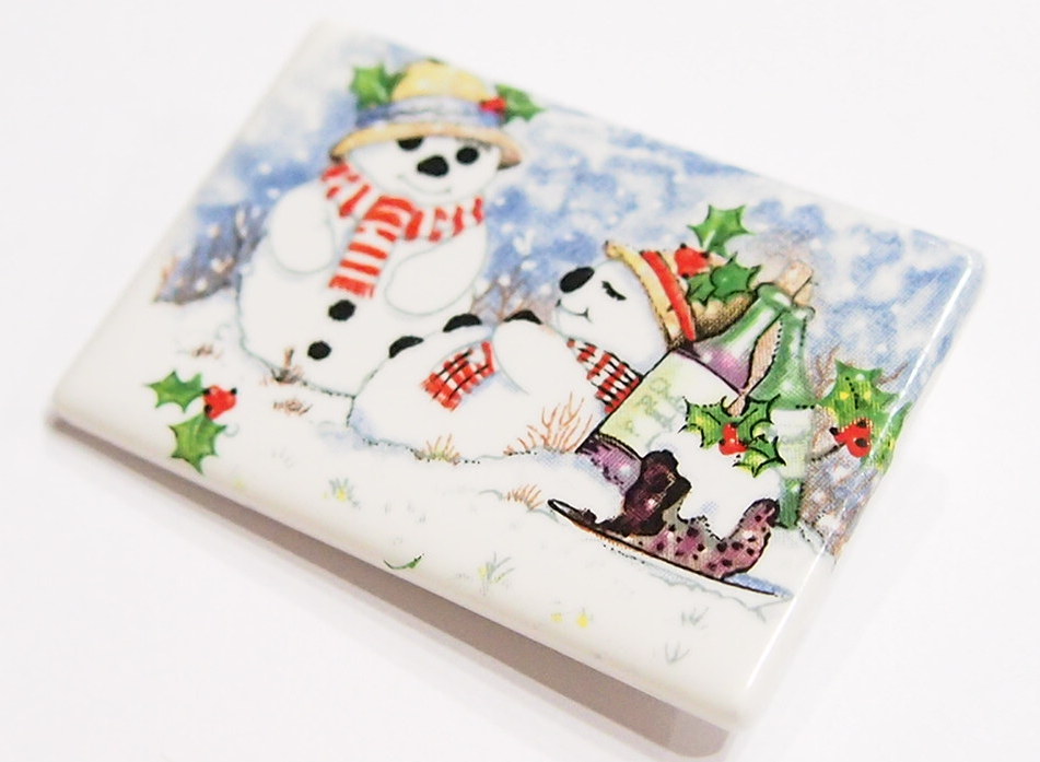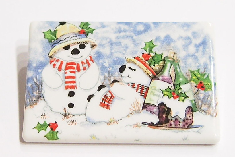 You are buying a Beautiful Porcelain Pin or Pendant with Mr. & Mrs. Frosty in the winter wonderland. They have eaten their fill as the plate still has food on it. In the background is a couple of bottles of Holiday Cheer. This measures 47.5 mm x 31.5 mm or 1.86 inches x 1.25 inches. This would make a great gift or indulge yourself. You can glue a pin back on these and they would be ready to wear. I have lots of Great Bails, Bracelets, Cameos, Chains, Connectors, Jump Rings, Lockets, Pendants, Pins, Rings & Settings so, just look at all my listings. I have several other holiday themed Cameos so give them all a look.