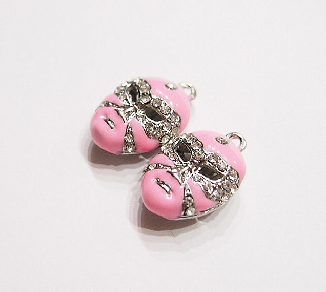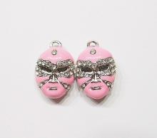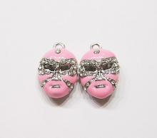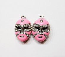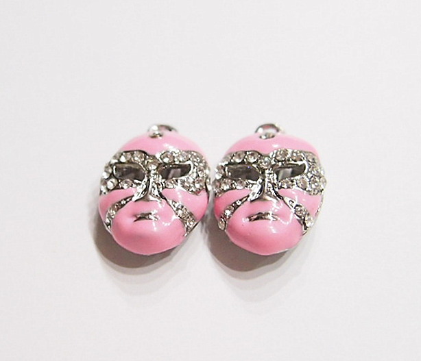 You are buying a Pink Mardi Gras Style Pendant, Earring or Charm Set. This is a very nice looking & well made set of either Pendants, Earrings or use them as Charms. These measure 23 mm x 16 mm including the loop at the top. The top has a nice size loop (2.7 mm) for your Earring Loop or you could put a Chain or Cord or Jump Ring (which I have 3 Colors & 2 Sizes of) through it. These are gorgeous with Crystals set in the Face & are made of metal & nicely painted. These are nickel & lead free. I have lots of Great Bails, Bracelets, Cameos, Chains, Connectors, Jump Rings, Lockets, Pendants, Pins, Rings & Settings so, just look at all my listings. I also offer a Pink Mardi Gras Pendant & Matching Earrings Set item #Pink Mardi Gras Pendant Earring Set. I also have these in Blue, White, Black, & Purple.