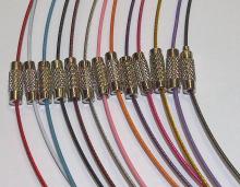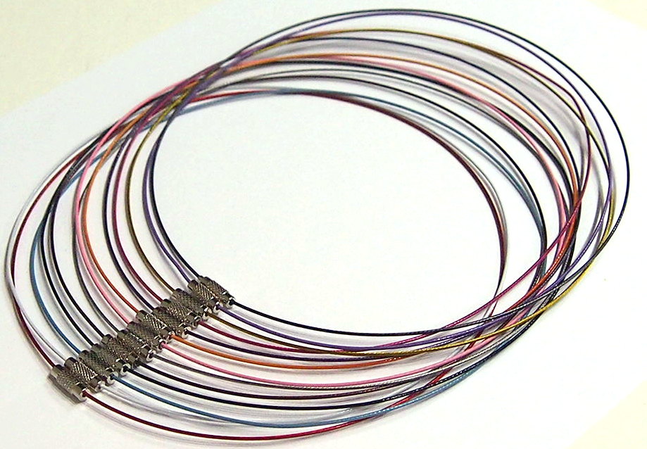 You are buying a Red 18" (inch) Vinyl Coated with a screw together Barrel Clasp Necklace or Neck Wire. The ends are only 2 mm in diameter which makes these small enough to go through almost any pendant or bail. These are fantastic in that you know your pendant or special piece (Family Heirloom) is not going to slide off & be lost or broken because of the secure way the screw barrel clasp engage. These are made of strands of rhodium (steel) wire that are coated with a Vinyl outer sheath. I have lots of Great Bails, Bracelets, Cameos, Chains, Connectors, Jump Rings, Lockets, Pendants, Pins, Rings & Settings so, just look at all my listings. I have these in 11 other Colors & in a group of 12 Colors as shown in the last 4 pictures item #361140615234, sold separately. I also offer 2 colors similar to this (White/Silver) item #360958546644 & (Black) in 20", item #854546536481.