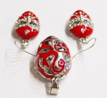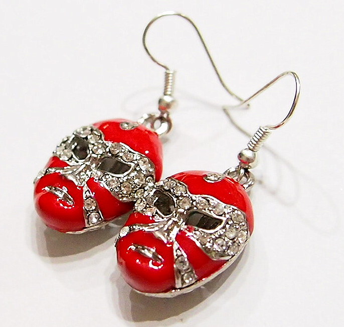 You are buying a Red Mardi Gras Style Pendant & Matching Earring set. This is a very nice looking & well made set. The Pendant measures 28 mm x 20 mm & the Earrings measure 20 mm x 16 mm. The Pendant has a swivel bail & all have nice size loops at the top to put your chains or Neck wires through. You can remove the earring loops if you want to have charms to match the Gorgeous Face Pendant. These are made of metal & nicely painted with the Mardi Gras look to them. These are all nickel & lead free. I have lots of Great Bails, Bracelets, Cameos, Chains, Connectors, Pendants, Pins, Rings & Settings so, just look at all my listings. I also have these in Blue, White, Black, Purple & Pink.